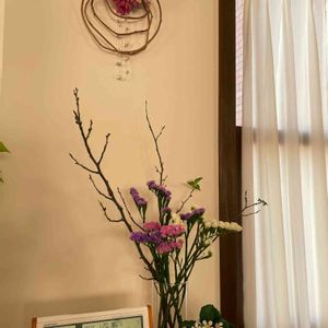 お正月用 ☆お正月用リース 散歩でみつけたアケビの蔦&飾りは、、娘の成人式の時の髪飾りで簡単に作りました ☆生花 カインズで富山産チューリップ10本&桜🌸のシンプルに チューリップは蕾を選んだので丁度、お正月に咲くといいなぁ^ - ^