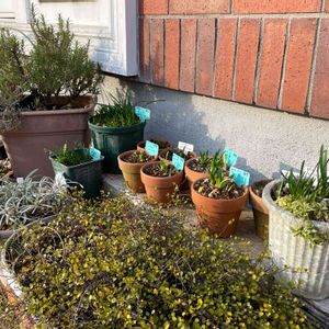 球根いろいろ 今日はかなり頑張って作業しました 陽当たりの良いところに移動させました 薄くなっていた花ラベルを書き直しました ✴︎ムスカリ8種類(10種いるはず) ✴︎水仙 3種類 ✴︎ヒヤシンス ✴︎ガラスの花 去年は埋もれて咲かなかったので(パンジーの勢いに負けて)今年は寄植えにせずに様子を見ています。 咲いてくれますように
