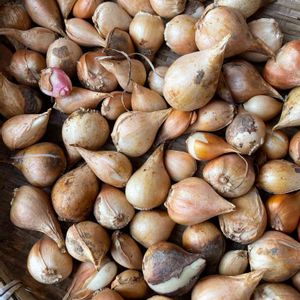 チューリップの球根🌷 掘り上げて 地面に仮置きしたら ダンゴムシ達の朝ごはん