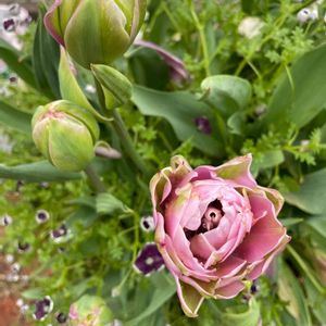 チューリップ〔バイオレットプラチーナ〕 雨が降り出しました☔️ 今シーズンラストを飾ってくれます チューリップさん🌷です