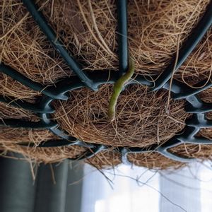 室内でグリーンカーテンを作ってみたいと思い、またシンゴニウム ホワイトバタフライをハンギングにしてつるを伸ばして育てるとどうなるんだろうという好奇心もあって、夏前頃にハンギングにしたシンゴニウム ホワイトバタフライです。 成長がゆっくりで、あいにく夏の日差しを遮る役には立ちませんでしたが、なかなか美しく育ってくれています。 来年の夏に期待です。