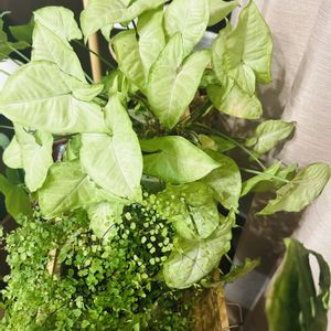 ベンジャミン バロック、 ツヤツヤの新芽がいっぱいです♩ 🏷ベンジャミンバロックsaku 左側は シンゴニウム ホワイトバタフライ こちらもかなりボリュームが出ました(*ˊᵕˋ* ) 🏷シンゴニウムsaku