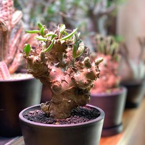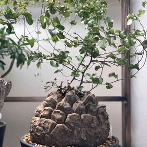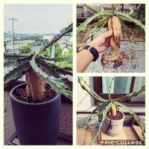 ユーフォルビア ブルアナ(ブルアーナ) 妻からの誕生日プレゼント😁写り切れないですが横幅60cm越え。。幹も10cm。 鉢パンで割れてたんで植え替え