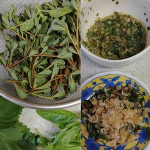 スベリヒユで2品作ってみました。 クセもなく、食感がよく少し粘りあり。 ツルムラサキに似てるかな。 クックPのレシピで ↗️なめろう風(庭のしそとバジルも) ↘️おひたし