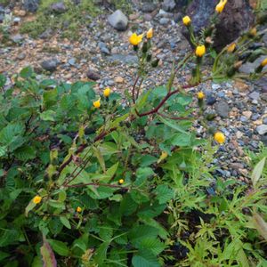 カンチコウゾリナ(寒地剃刀菜・寒地顔剃菜) キク科 コウゾリナ属 7~8月 25~50cm 在来種 越年草~多年草 亜高山帯~高山帯の砂礫地、草地に生える 全体に剛毛が多い 茎葉は長さ4~15cmの倒披針形 下部の葉は基部が細く葉柄状になるが、上部の葉は無柄 葉縁には不規則な鋸歯がある✨ 花径2.5~3cm 疎らな散房状に付き、総苞には先が二股に分かれた黒い剛毛が密に生えていて黒っぽい✨ ※ 似た花に、ヤナギタンポポ属のミヤマコウゾリナがある ミヤマコウゾリナは茎に白毛が多く白っぽく見える 葉は根出葉が主で、茎葉は茎の下部に少しつき鋸歯はほとんどない✨ また枝分かれは頭花の近くになる