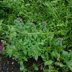 実家の庭のかわいい雑草、ミドリハコベ。コハコベと違って、茎も緑色です。