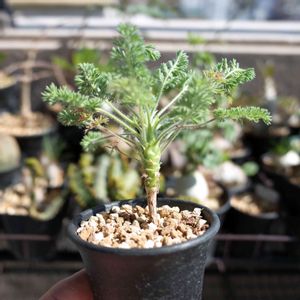 ペラルゴニウム・オレオフィルム(実生) 大分モサモサしてきました。休眠明けに出てきた葉は淘汰されて新しい詰まった葉が残るかな。