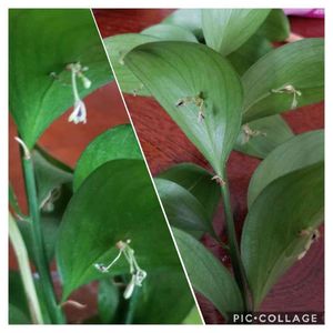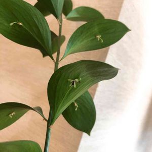 10ヶ月前から花瓶に挿してあるルスカス🌿 枯れないのにびっくりしていたら葉っぱの裏に花が咲いた〜😆