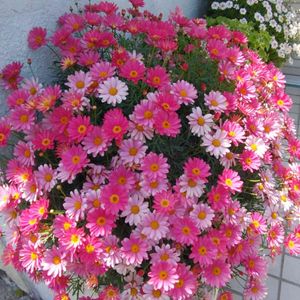 マーガレット 正体は判らず🧐 6月頃庭の隅っこに、種をチラッと 撒いて置いた様な気がする😓 芽が出て来たので鉢替えしたら こんな風になりました🌸🌼 蕾みが有るのでその内判るでしょう😆😃👌 もう1鉢あります(*´꒳`*)
