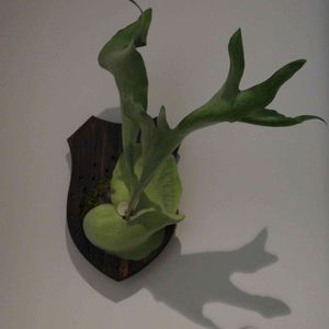 仕事から帰ってきたら、今日休みの旦那が、ビカクシダを板付けにしてくれてましたᐠ( ᐛ )ᐟ どこに飾ろうかな🤔