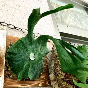 ビカクシダ、グランデ! 張り替え作業しました。スマーフの板へ 外管理にしたけど大丈夫かな… まだ室内の方がいいのか迷う