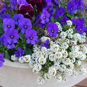 こんばんは♪ 今日は寄せ植え楽しみました(^^) この子はパンジークリスタルマーメイド 淡雪の頃と長い名前を持っている、変わり咲きのパンジーです。 ふんわりと薄く雪がつもる。冬の声が忍び寄り朝日の照り返しでキラキラと乱れ輝く光線がほんのり青く。 大輪の2色咲きの品種ですが、株ごとにシェード(色幅)のある品種です。 色の変化が楽しみなパンジーです💕