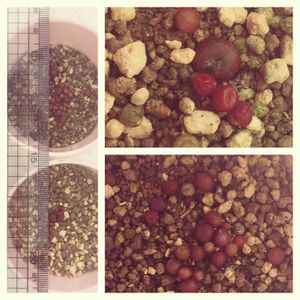 ついに念願のコノフィツム・ブルゲリをゲット! 直径約1ミリでかなり不安でしたか、大きく成れば成るほど高価になるので、勢いでポチっちゃいました😅 しかも栽培が難しいと言われてるブルゲリです、栽培未熟な私にとって無謀な事は充分承知です。この子は、これが最初で最後の投稿かも知れませんが😅出来る限りの手を尽くして育ててみます😌 取り敢えず今リトープスの種蒔き育成中の所に、居そうろうさせました。 毎日ドキドキしながら子の様子をチェックする日が続きそうです😅