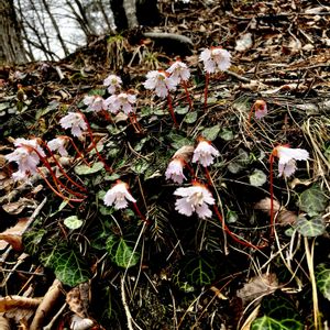 イワウチワ Shortia uniflora (Maxim.) Maxim. 東北地方から中国地方の山地の広葉樹の林や川沿いや渓谷などの斜面、岩場などに生育する。 花期は4〜5月