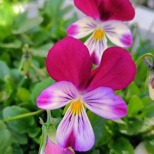 こんにちは オキザリスの開くの待ってました ①オキザリス 朝一番にはなかなか開いてくれなくていつも見逃してしまうので 今日は待ってました(*^^*) この子葉っぱの裏が赤くて かわいいです 以前いた子がいつの間にか居なくなりまたお迎えしました 蕾のクルクルもかわいいです💛 ②ビオラ タイガーアイ タイガーアイ × フロチョコ かけあわせです 面白いからお迎えしてみました☺️ ③ビオラ ④パンジー 咲き始めより色薄くなりましたが 花持ちいいです( ˙-˙ ) ⑤ルビーネックレス モリモリはみどりみどり💚 こじんまりは 年数経ってるので 深みがあります🥰 今週もよろしくお願いします