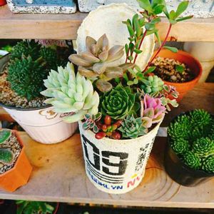 エケさんたちリメ缶に お一人様で植え替え待ちです😍💕 太陽が恋しいね~❤