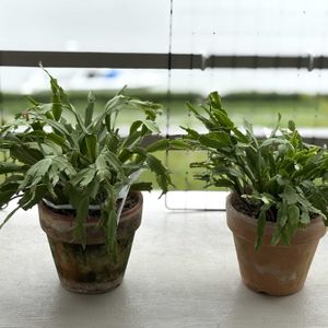 ☔️🌪️🌀昨日は竜巻注意報 植物🪴の手入れをしました ①②デンマークカクタスの葉摘み (ビフォー→アフター) 左からダーク・マリー、コンペイトウ🍬 ダーク・マリーは先端2枚ずつ、コンペイトウ🍬は1枚ずつに ③④花友さんに頂いたワルケリアナ2株 (誘引前→誘引後) 未だ咲かず💦seed potさんのYouTubeで水切りすると初めて知り来月上旬まで水やり止めてます