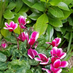 ガーデンシクラメン 上手く夏越しできたことがないのに、どうしちゃったんだろう⁉️ 冬より綺麗な色で咲いている😃 このまま、ずっと咲いてくれるのかしら……❔❔❔