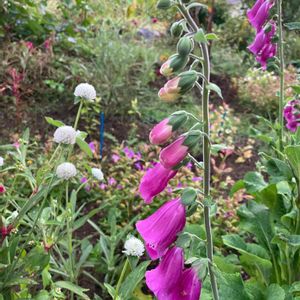 ジキタリス 実家の庭 季節はずれですよね😅 夏に小さな苗をいただき、実家の花壇に植えたら、今、満開💕 赤紫(マゼンダ)色の花と白い千日紅が綺麗でした❣️