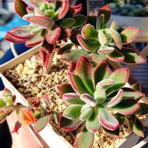明けましておめでとうございます🌄 今年もGSの皆さんと、💗Succulents life💗を楽しみたいと思います🌼🌿 皆で可愛い子ちゃん自慢をしたり、コミュニケーションが出来ると嬉しいです😌🌸💕 よろしくね~💓♥️❤️ 今年の初のpic📸は‥ 場所問題で夏にチビ苗達をまとめて入れたら‥あら寄せ植えの完成⁉️の巻き~😆💕 確かねぇ‥手前が姫秀麗・隣がロビン×ワイルドコロラータ・ ブラッククイーン・ラウ065・ 一番大きく成長したアモエナビルバ‥ 真ん中にピンクプリティー×2株よん☺️👏