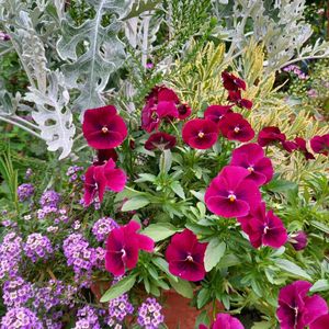 シックな赤いビオラ🌼と アリッサム💞の寄せ植え💕