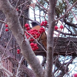お散歩にて🚶♂️ ウメモドキの木に 鳥さんが止まったよ。 何の鳥かなぁ🤔 GSさんに教えて頂きました 「ジョウビタキ」と言う鳥だそうです ありがとうございました🙂