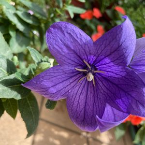 「キキョウ」雄性先熟の雄蕊から花粉が出て、広がったところです。まだ雌蕊が開いていません。 この後雌蕊の先が開き、よその花粉がついて受粉します。他家受粉する仕組み、他の遺伝子を取り込む働きが、植物に備わっているのは、すごい‼️ 雌蕊が開いたところは以前7月にupしたpicを見てください。 野に咲くキキョウは絶滅危惧種になっているのは、寂しいですね。
