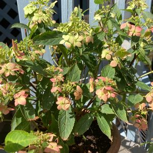 6/30に投稿したヤマアジサイです あの時はピンクの可愛らしい花でしたが 異例の猛暑で焼けちゃったのか? 季節の移り変わりで秋色になったのか? 良く言えばシブく大人色に、、、、、、😂 とにかく枯れる事無くこの夏場を乗り切ってくれました 外は秋風⛅️が吹いてます またまた台風が接近中💨 みなさま ご注意下さいませ🙇 🏷木曜日は木に咲く花 だそうで、、、、、、 参加します