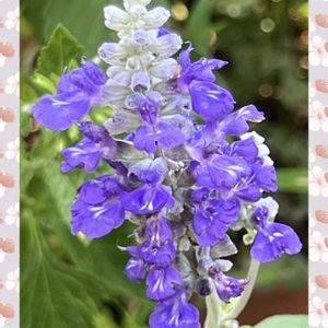 庭のブルーサルビア、朝顔の青い花も沢山発見 我が家の花畑のユーパトリュームも満開です
