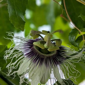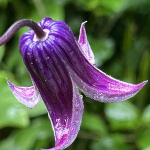玄関前で鉢植えのクレマチス 籠口(ロウグチ) 可愛い篭の様な形です、和名はテッセン(鉄線)