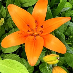 梅雨入り前にハイビスカス 常夏の香りが咲き、 八重咲きオレンジ色の透かし百合も咲いてきて もう我が家の庭は真夏の太陽が輝いてます🌞