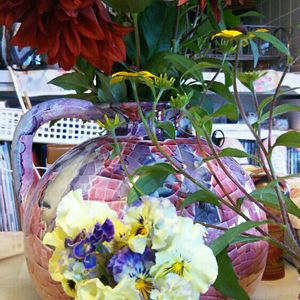 こんにちは✨😃❗ 今日は曇り☁です🍁 ビオラの苗を🌱鉢に植えました😽 その時にビオラのお花を切りました。元気に根を張ってくれますように😸