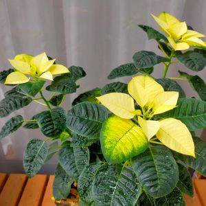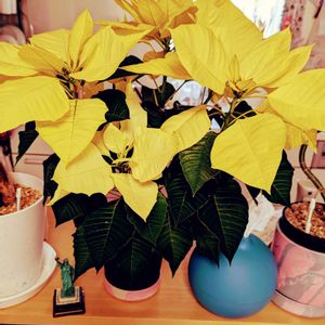 今日は快晴です 暖かな陽射しが気持ち良いです 昨年のポインセチア イエローカラーです 夏越しできました 初めての事です💛 夏の間北向きの涼しい軒下に置いていただけですが、、 嬉しいです🎶