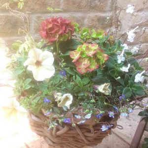 モカフェローズ様満開です。 ペチュニアとブルーデージーとよく似合う。
