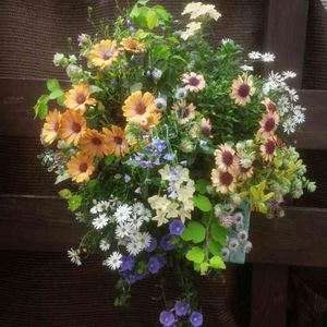 おはようございます。 手作りのブック型の器です。 伊予獅子手まり、ペチュニアなど。
