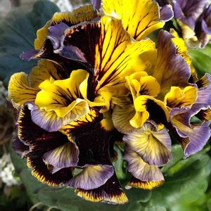 絵になるスミレ ソレイユ 芸術性と豪華さを追及した名画のようなパンジーですって 花びらがフリフリ過ぎて クシャおじさんみたい🤣🤣🤣🤣🤣 花屋さんでこの花色は最後のひとつで ラッキーでした 残りものに福❗️💕、ありかなぁ~ サカタのタネさんのパンジー めちゃくちゃ種類ありますね 🏷️ビタミンカラーと🏷️青い花に魅せられて どっちもアリかなぁ でもこのフリフリの花びら どうなってるの❓️❓️