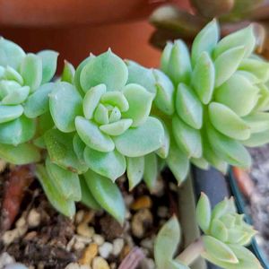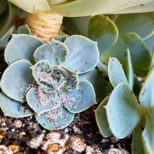 冬の間傷んで親株がシワシワになった所にいた子を救出!! 一鉢にまとめました。 ほとんど根っこがでてたのでこのまま水あげました💞 大きく育ってね〜!!🙌🤗