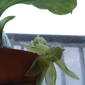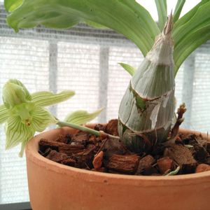 タケノコ蘭 クロウェシア ルッセリアナ💚🤍💚 夏咲きタケノコさん 以前、ユーザーさんに夏咲きはいかがぁ❓とおすすめしていただいてました🤣 管理方法調べなきゃ🤫