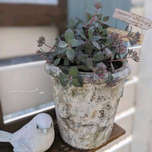 もうひとつお迎え記録です。 カラスバミセバヤ (バートラム アンダーソン) です。 名札にはセダム、と書いてありますが、正確にはヒロテレフィウム属です。 また名前に ミセバヤ とついていますが、純日本産ではなく、海外で園芸品種として作られたもののようです。 ヒダカミセバヤ の交配種とも言われているようです。 ミセバヤ類についてはただでさえ名前間違いの流通が多く、何が縁戚関係なのかよくわからないのですが… このカラスバミセバヤは、冬になると葉が黒っぽくなり独特の雰囲気になるようです。 しかしこの苗は少し徒長気味…なのかな?茎が伸びるタイプなのは確かなようですが、少し葉と葉の間隔が空きすぎな感じがしますね。 ツボミがたくさんついているので、これから花が咲きそうです。 ※みどりのまとめに、カラスバミセバヤについて調べたことをアップしたので、よろしければご覧下さい。