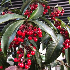 センリョウ 黄実千両 今日のお花 小児科の垣根に赤、黄色のセンリョウ 実がたくさんついています。