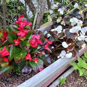 赤❤、白🤍ベゴニアがひっそり咲いていました。✨✨✨✨😃✌️