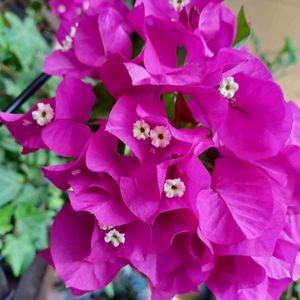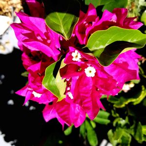 今日のお花💐. 🌿ブーゲンビリア❀•🌿❀🌿❀🌿 鮮やかなピント、お花の様に見えますが、お花を包む葉の一部『苞(ほう)』です🍀 ずっと、花弁だと思っていました🌸 小さな白いお花が、可愛いですね❀ 花言葉 【情熱】 【熱心】 【魅力】