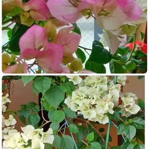こんにちは☀️ 今日のベランダ🎵 春少しだけ咲いてくれた白地ピンクのブーゲンビリア♡💗 秋深まった今🍁🍂 沢山お花咲き出しました😍😍😍ビックリ もっと華やいでからupしようと思ってましたが 待ちきれなくてupしちゃいました~(*>∀<*♡※。.:♪︎*:・'°☆~