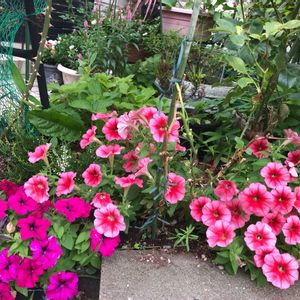今年の夏の写真です。 ペチュニアさんたちがウェルカムスペースを鮮やかにしてくれました。 強い子たちはまだ葉を枯らさずに 頑張っています。 その子たちは零れ種から大きく 育ちました。 生命力ってスゴイですね❣️
