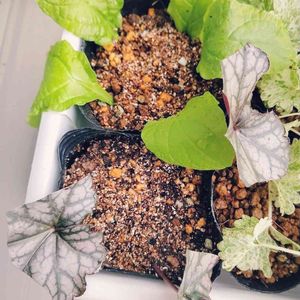 アジュガ葉挿しから出てきた新芽少しづつ増えてきました🌱紫のヒューケラ葉挿しは小康状態。 触っちゃダメ〜と自分に言い聞かす為に投稿(根っこ生えてるか確認したくてウズウズ💨)