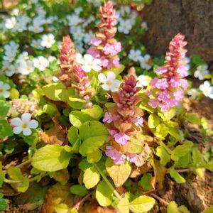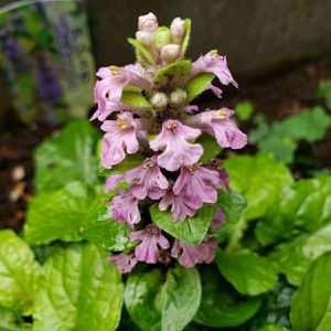 アジュガに魅せられて 色違いの苗を購入した ゴールドライムさんも開花 ピンクが可愛い(`・∀・´)