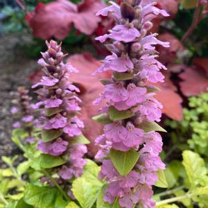 今日はもう一枚…🙇♀️ 昨日のチョコレートチップに続いてのアジュガpart 2です😄 🔸アジュガ ゴールドライム🔸 青系の穂が多い中、黄緑色の葉とピンクの穂が可愛い子です💕