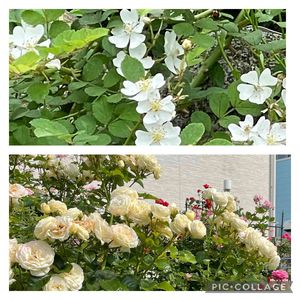 緑のなかに白が映えて 地面の小さな花たちを従えて 淑やかなすがたが眩しい 私の庭にもこんな薔薇が咲いていました