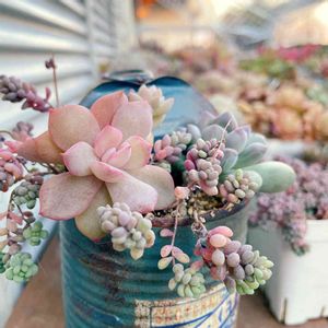 女雛×ブラッドリー 結構な女雛よりな気がするけど、どうだろー 近くでみたら、葉の間からわちゃわちゃ子吹きが。 群生好きだから、どんな鉢でどんな群生にするか考えて、今から楽しみ🎶