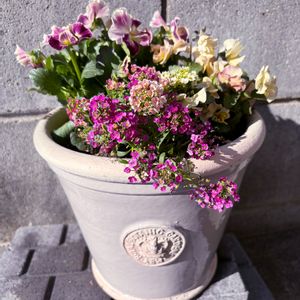 おはようございます♪ 暖かい日が続いてお花も嬉しそう😆 玄関前の寄せ植え ヌーベルヴァーグアンジュ、マイガール、レディ 綺麗だわぁ😍